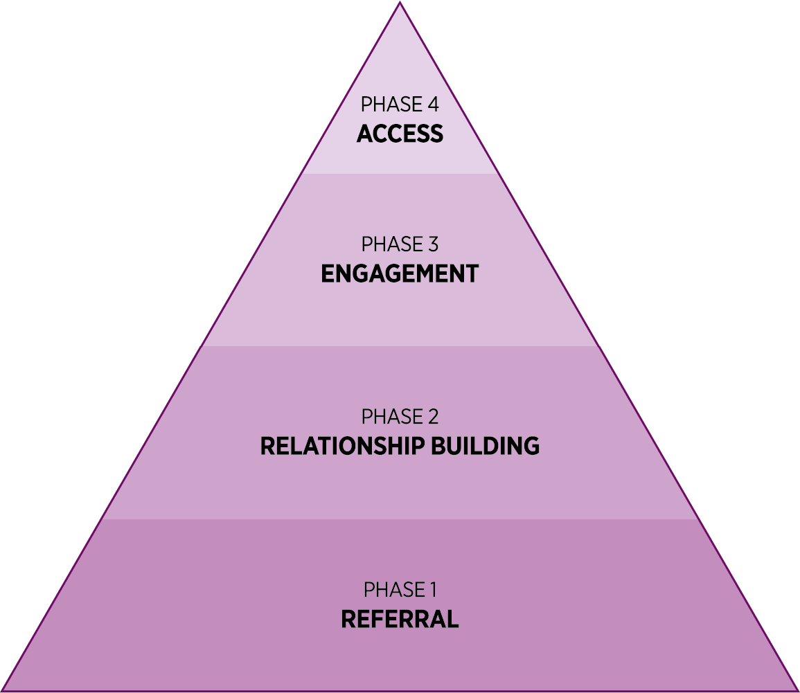 Referral, initial meeting with STET consultants, mentor matching, documentation sharing, timetable and target setting. Mentor and family introduction.